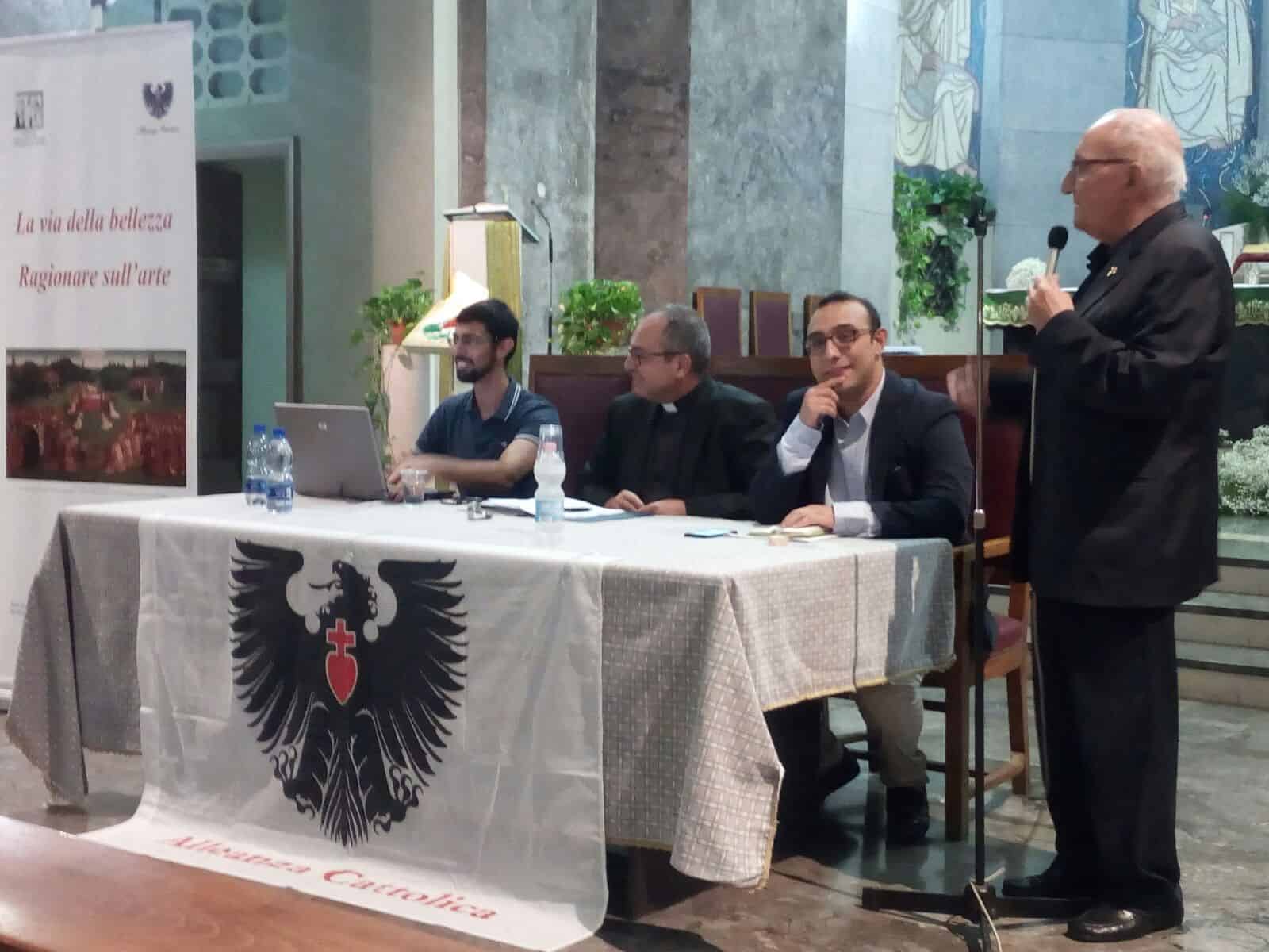 La mostra d’arte “La via della bellezza”, allestita da Alleanza Cattolica presso la chiesa di San Giorgio al Corso, è stata inaugurata ieri – domenica 17 settembre – con un ricco dibattito moderato da Federico Minniti, giornalista di Avvenire, al quale hanno partecipato don Demetrio Sarica, direttore dell’Ufficio diocesano per i beni culturali, e Giorgio Arconte, a sostituire il professore Daniele Fazio assente per gravi motivi familiari.