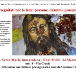 Organizzato dalla Parrocchia Santa Maria Immacolata e Santi Bartolomeo e Giovanni Battista si terrà presso la Chiesa dell’Immacolata, venerdì 24 marzo alle ore 19, dopo la Via Crucis, un incontro sul tema: “Perseguitati per la fede: persone, drammi, prospettive”. Tratterà l’argomento il prof. Daniele Fazio, di Alleanza Cattolica. … [Leggi di più...] infoRodì Milici (Me) – Perseguitati per la fede: persone, drammi, prospettive