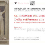 GLI INCONTRI DEL MERCOLEDÌ Dalla sofferenza alle virtù: il ruolo delle cure palliative simultanee MERCOLEDì 14 settembre 2022 ORE 21:00 Sede di Alleanza Cattolica Viale Parioli 40 – Roma (IDIS al citofono) Interverrà: Claudia Navarini: Professore ordinario di Filosofia morale presso l’Università Europea di Roma … [Leggi di più...] infoDalla sofferenza alle virtù: il ruolo delle cure palliative simultanee
