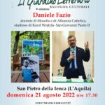 L'Aquila - 21 Agosto 2022. Organizzato dall'associazione culturale San Pietro della Ienca, con il patrocinio del Comune e del Consiglio regionale dell'Abruzzo, presso il giardino letterario antistante il Santuario dedicato a San Giovanni Paolo II, alle ore 17.30, si terrà la presentazione del libro di Daniele Fazio, In difesa dell'umano. La filosofia di Karol Wojtyla (D'Ettoris … [Leggi di più...] infoL’Aquila, In difesa dell’umano. La filosofia di Karol Wojtyła