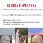 Lunedì 20 giugno, ore 19:00 - Organizzato da Alleanza Cattolica, presso la Casa Mariana “Santa Maria del Cenacolo” dei Frati Francescani dell’Immacolata (Via Case Longo 2), si terrà una conversazione con Marco Invernizzi, Reggente Nazionale di Alleanza Cattolica, su Guerra e speranza. Il conflitto russo-ucraino, la crisi dell’Occidente, la profezia di Fatima. … [Leggi di più...] infoBarcellona Pozzo di Gotto (ME), Guerra e speranza