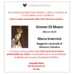 Fatima irrompe nuovamente nella storia: riflessioni a margine a cura del Reggente Nazionale di Alleanza Cattolica Marco Invernizzi L’incontro sarà preceduto dalla Via Crucis che si terrà a partire dalle ore 19,00 e si concluderà con la recita dell’atto di affidamento al cuore Immacolato di Maria … [Leggi di più...] infoPORTICI (NA) – LA CONSACRAZIONE DELLA RUSSIA E DELLA UCRAINA AL CUORE IMMACOLATO DI MARIA
