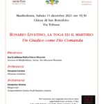 Sabato 11 dicembre, presso la chiesa di San Benedetto in Via Tribuna a Manfredonia, alla presenza di Sua Eccellenza Padre FRANCO MOSCONE Vescovo di Manfredonia, Vieste, San Giovanni Rotondo ed introdotto da Giovanni Corvino, responsabile locale di Alleanza Cattolica, Domenico Airoma, vice presidente del Centro Studi Livatino, illustrerà la vita e le opere del magistrato … [Leggi di più...] infoManfredonia (Fg) – Rosario Livatino, la Toga ed il Martirio. Un giudice come Dio comanda