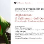 Lunedì 18 ottobre alle ore 21 avrà luogo in diretta sul canale Youtube e sulla pagina Facebook di Alleanza Cattolica il webinar riguardo il tema "Afghanistan: Il fallimento dell'Occidente". Interverranno Padre Giovanni Scalese, Silvia Scaranari e Valter Maccantelli. Modera Stefano Nitoglia. … [Leggi di più...] info“Afghanistan: Il fallimento dell’Occidente”