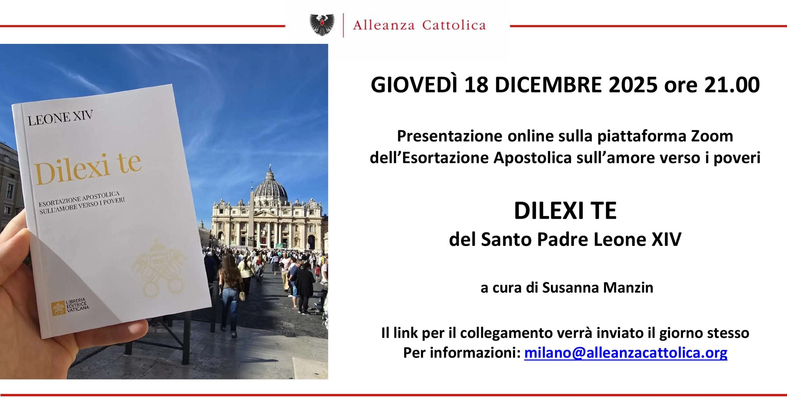 GIOVEDÌ 18 DICEMBRE 2025 ore 21.00 Presentazione online sulla piattaforma Zoom dell’Esortazione Apostolica sull’amore verso i poveri DILEXI TE del Santo Padre Leone XIV a cura di Susanna Manzin Il […]