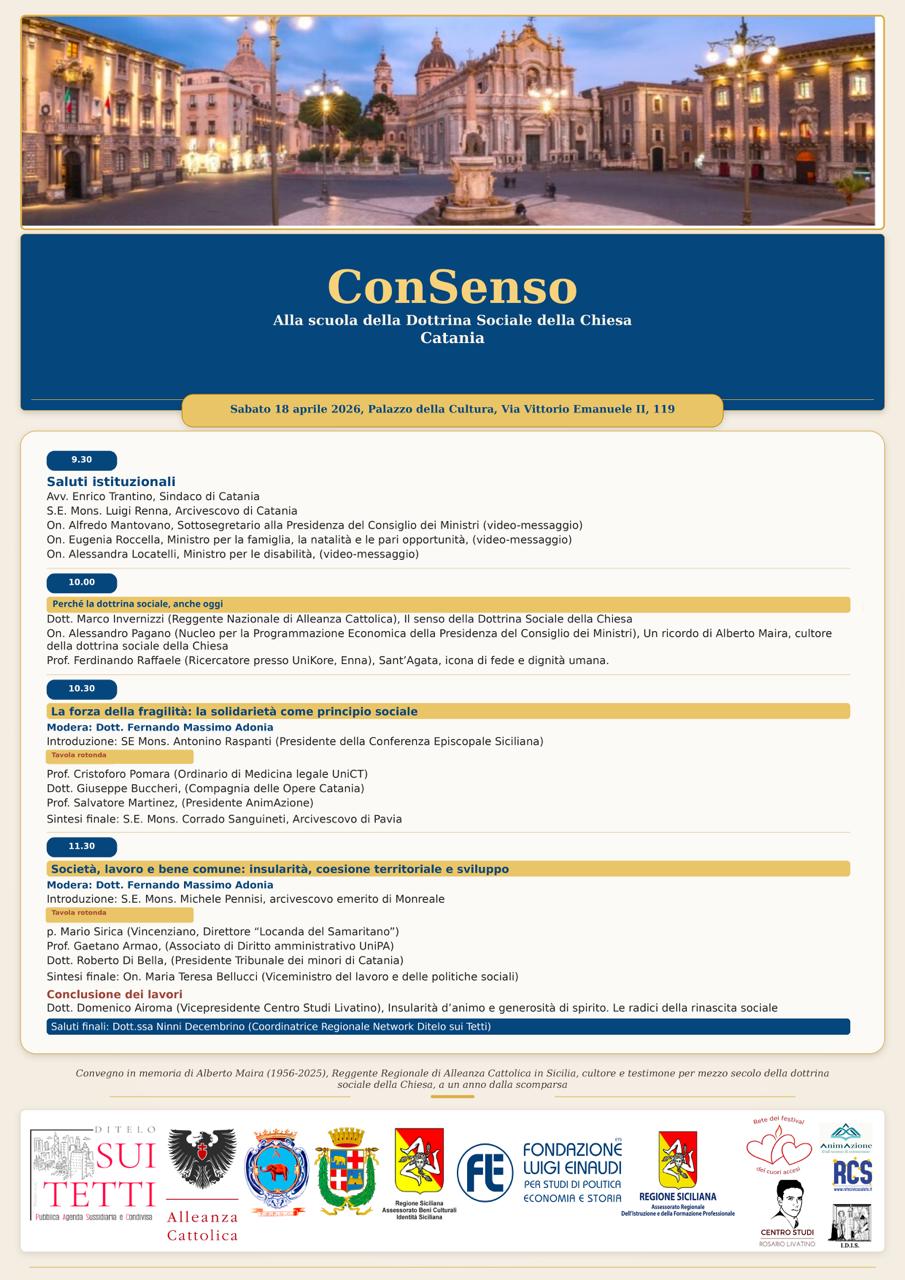 Catania, ConSenso. Alla scuola della Dottrina Sociale della Chiesa
