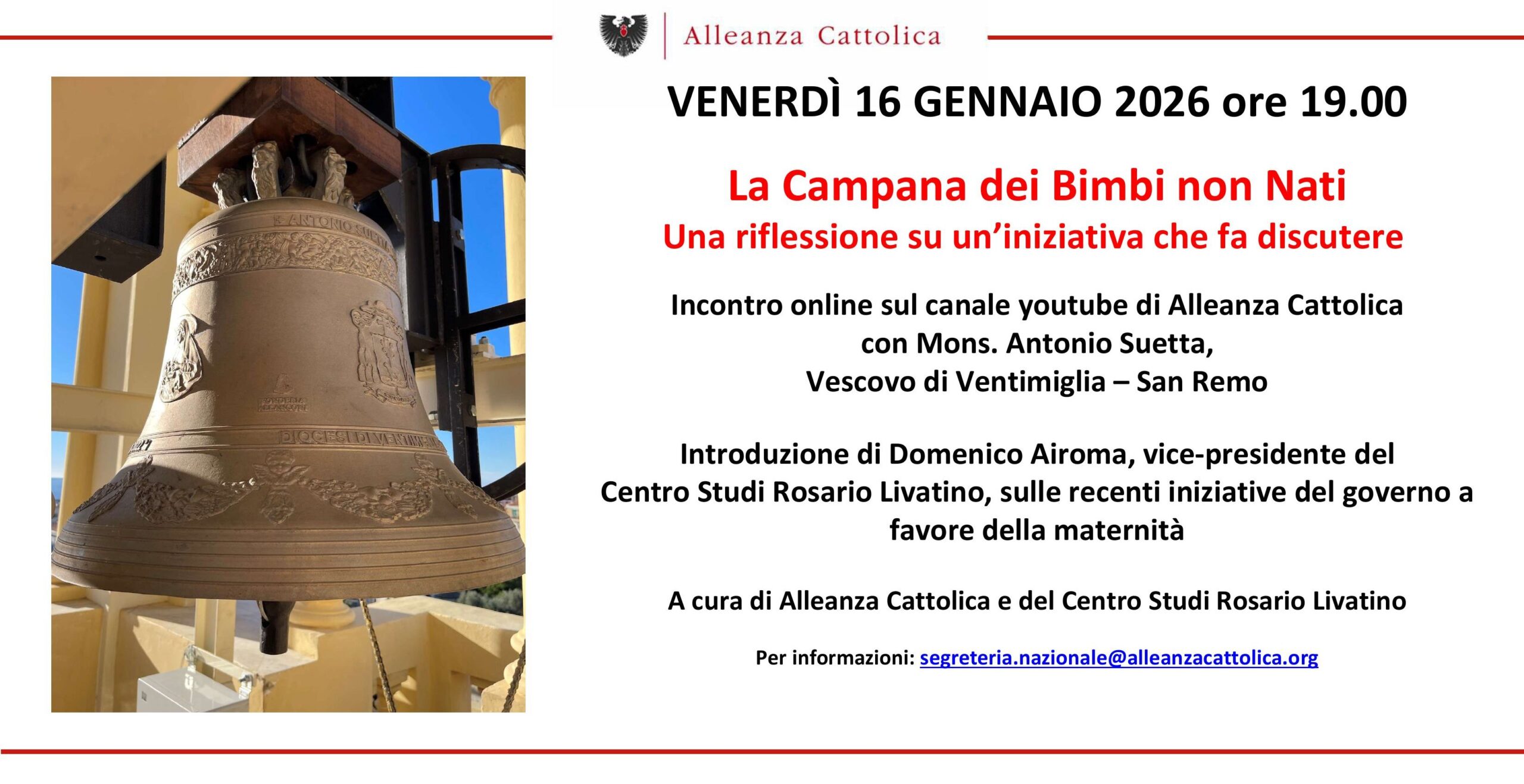 Incontro online sul canale youtube di Alleanza Cattolica con Mons. Antonio Suetta, Vescovo di Ventimiglia - San Remo Introduzione di Domenico Airoma, vice-presidente del Centro Studi Rosario Livatino, sulle […]