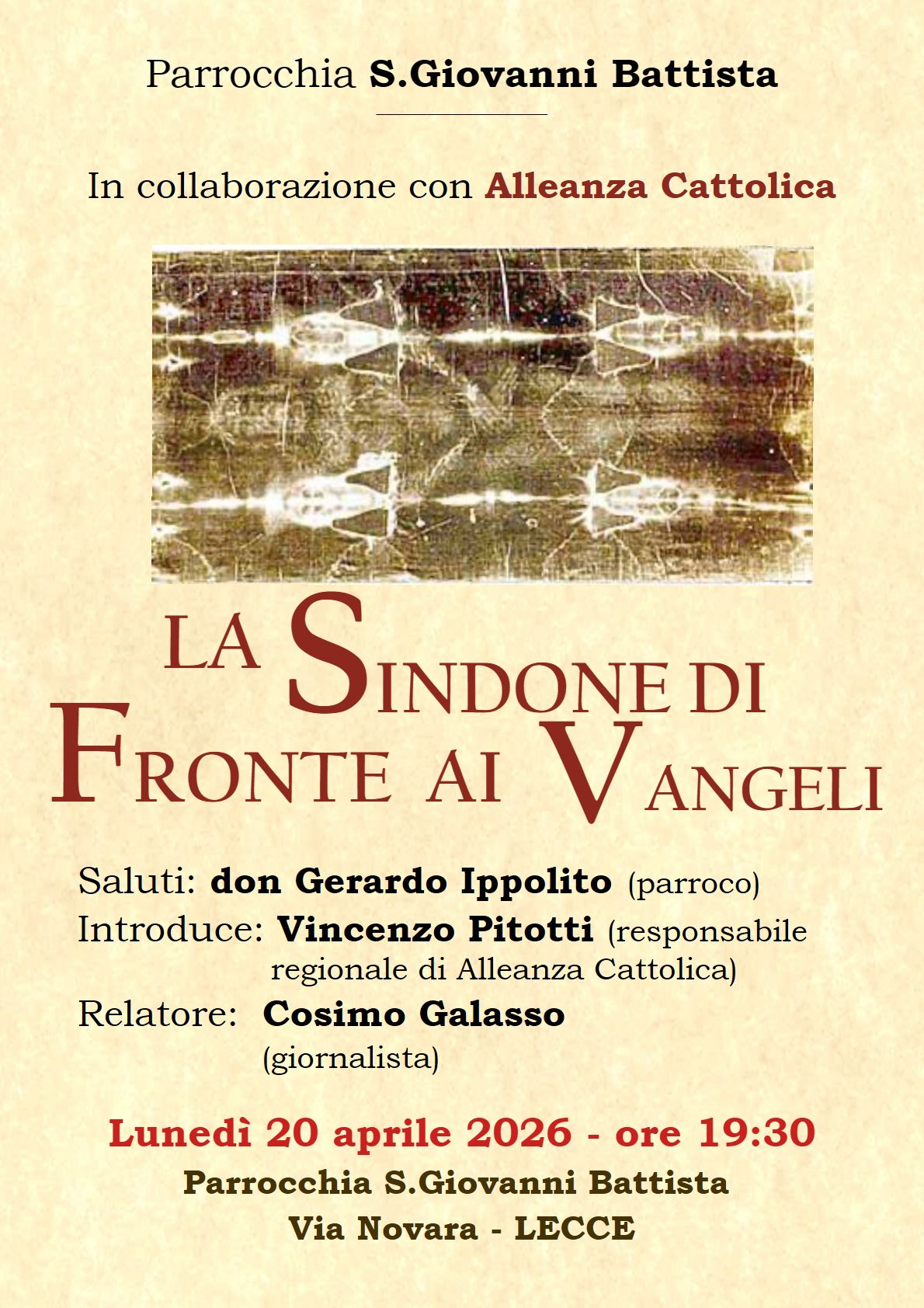 Lecce – La Sindone di fronte ai Vangeli