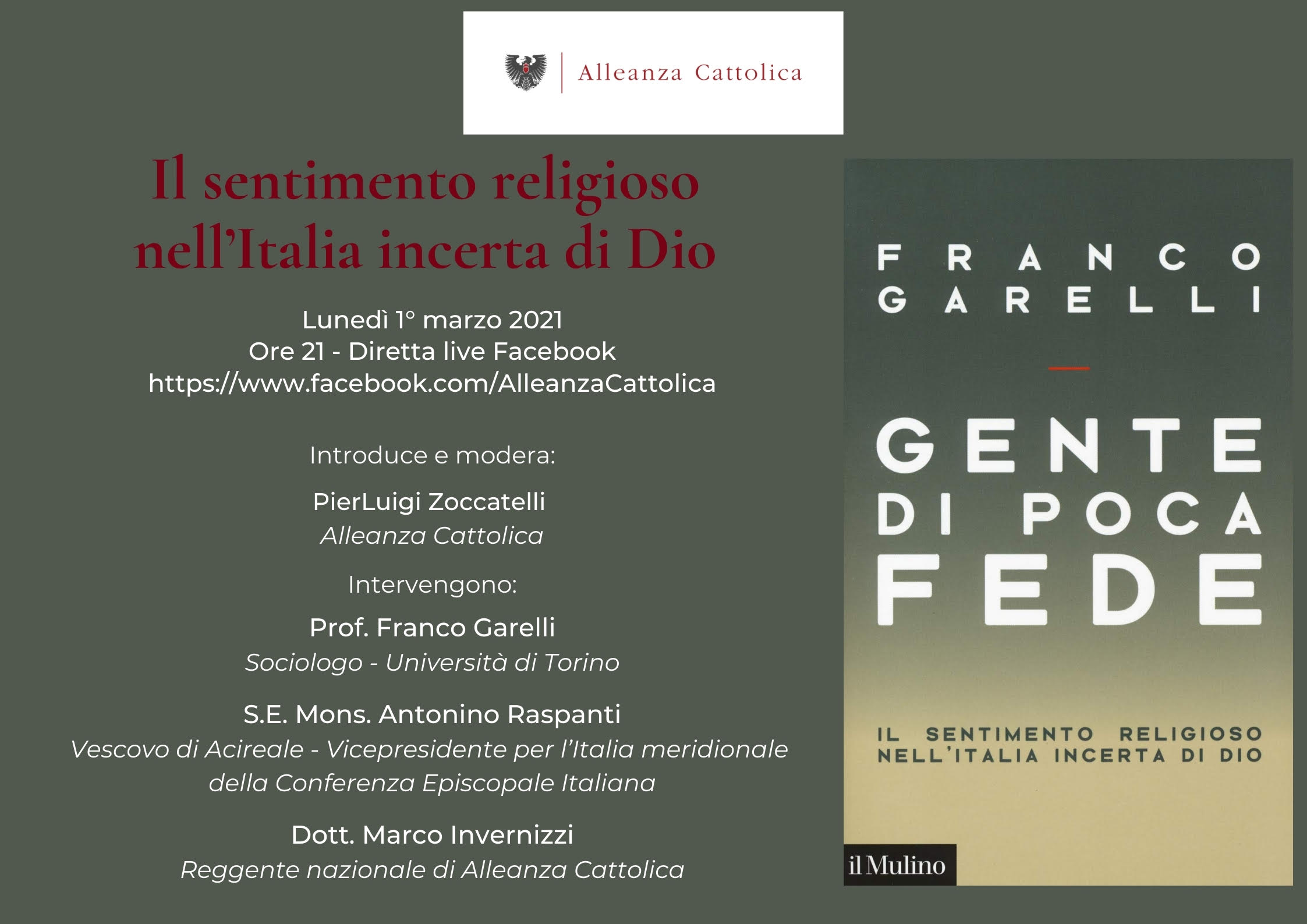 Evento on line: “Il sentimento religioso nell’Italia incerta di Dio”