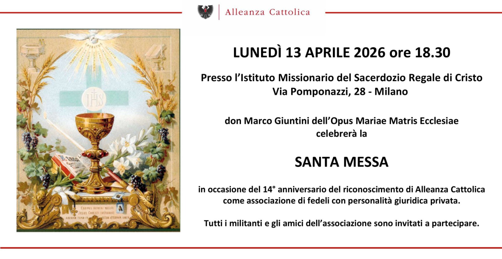 Santa Messa per il 14° anniversario del riconoscimento ecclesiastico di Alleanza Cattolica