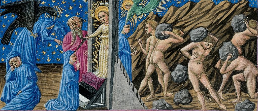Infine l’ultimo gradino. Dice Dante che «[…] porfido mi parea, sì fiammeggiante/ come sangue che fuor di vena spiccia» (vv. 101-102). È il momento che i teologi definiscono satisfactio operis, la remissione dei peccati attraverso le opere, cioè l’impegno del peccatore assolto a compiere un sacrificio morale o materiale che valga come soddisfacimento del male commesso. Il rosso indica l’ardore della carità e la durezza della pietra il fermo proposito di non peccare più. Sopra quest’ultimo gradino tiene i piedi l’angelo portiere seduto su una soglia che a Dante sembra di diamante, simbolo di costanza: quella costanza che sarà necessaria al Poeta, al pari delle anime che incontrerà, per portare a termine la purificazione.