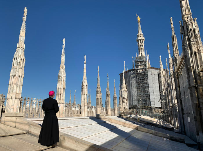All’Angelus di domenica 15 marzo Papa Francesco elogia l’arcivescovo di Milano, mons. Mario Delpini, di cui è stata appena trasmessa la Messa in diretta televisiva: «in questo momento sta finendo a Milano la Messa che il Signor Arcivescovo celebra nel Policlinico per gli ammalati, i medici, gli infermieri, i volontari. Il Signor Arcivescovo è vicino al suo popolo e anche vicino a Dio nella preghiera. Mi viene in mente la fotografia della settimana scorsa». L’istantanea ha colpito anche il Pontefice: «lui da solo sul tetto del Duomo a pregare la Madonna» per tutta la città contagiata dal coronavirus. Vi legge un esempio di quella creatività che Francesco ha più volte suggerito ai sacerdoti in queste settimane di quarantena: «sacerdoti che pensano mille modi di essere vicino al popolo, perché il popolo non si senta abbandonato; sacerdoti con lo zelo apostolico, che hanno capito bene che in tempi di pandemia non si deve fare il “don Abbondio”. Grazie tante a voi sacerdoti».