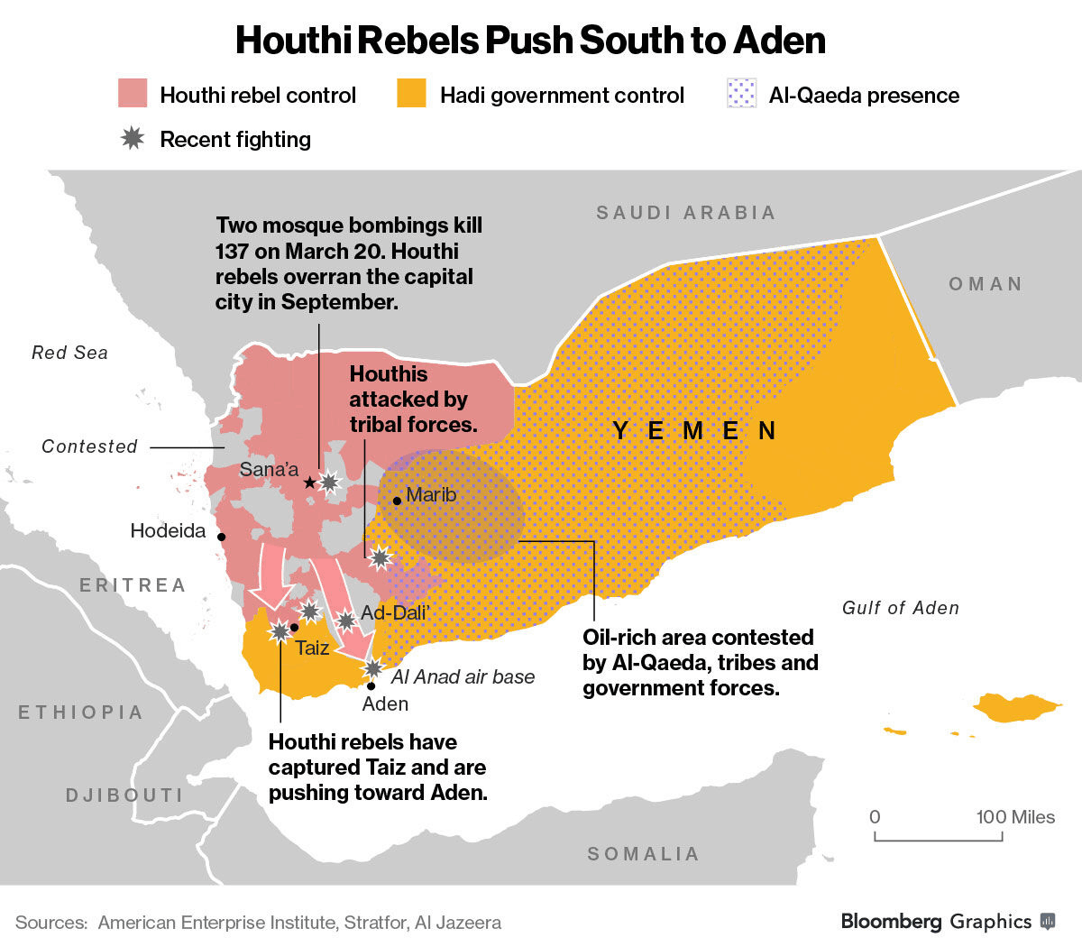 Gli attori autoctoni sono tre: le truppe lealiste che sostengono il governo del Presidente Hadi, le milizie ribelli Houthi e l’AQAP (al-Queda nella Penisola Arabica).