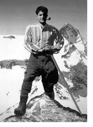 Pier Giorgio Frassati (1901 – 1925) è un ragazzo molto sportivo e amante dell’alpinismo. Compie escursioni e scalate impegnative nel Biellese, in Val d’Ayas e nelle Valli di Lanzo, dove oggi ci sono sentieri e percorsi a lui dedicati. A soli 10 anni conquista, insieme a suo padre, la Punta Castore del Monte Rosa, a 4226 metri. Per lui la salita è simbolo dell’ascesi spirituale, come scriveva nella lettera ad un amico: “Ogni giorno che passa mi innamoro sempre più della montagna; il suo fascino mi attira. Io capisco questo desiderio di sole, di salire su, in alto, di andare a trovare Dio in vetta. Oh, come le opere di Dio sono grandi e meravigliose! Vorrei passare intere giornate sui monti a contemplare in quell’aria pura la Grandezza del Creatore.” Molto spesso Pier Giorgio assume in prima persona l’onere dell’organizzazione delle escursioni, fa la spola su e giù dai picchi per dare una mano agli amici in difficoltà e per questo viene soprannominato “il mulo di montagna”. Arrivati al rifugio, partecipa all’allegria collettiva con spensieratezza, ma quando tutti vanno a dormire chi è più vicino a lui nota che nel silenzio della notte recita il rosario. Il 7 giugno 1925 compie la sua ultima gita (morirà meno di un mese dopo, il 4 luglio) durante la quale un amico scatta una foto che ritrae Frassati in un impegnativo tratto di parete. Pier Giorgio scrive a mano sul retro di quella foto: “verso l’alto”: quasi un motto, uno stile di vita, che sintetizza la sua breve esistenza terrena.