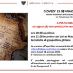 GIOVEDI' 15 GENNAIO 2026 ORE 20 Istituto Missionarie del Sacerdozio Regale di Cristo via Pomponazzi, 28. Milano IL PIANO MATTEI: un approccio non predatorio verso il Continente Africano ore 20.00 aperitivo ore 21.00 incontro con Valter Maccantelli, esperto in tematiche di geopolitica globale La presenza all’aperitivo va comunicata alla … [Leggi di più...] infoIL PIANO MATTEI: un approccio non predatorio verso il Continente Africano