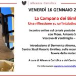 Incontro online sul canale youtube di Alleanza Cattolica con Mons. Antonio Suetta, Vescovo di Ventimiglia - San Remo Introduzione di Domenico Airoma, vice-presidente del Centro Studi Rosario Livatino, sulle recenti iniziative del governo a favore della maternità A cura di Alleanza Cattolica e del Centro Studi Rosario Livatino CLICCA QUI PER IL … [Leggi di più...] infoLa Campana dei Bimbi non Nati